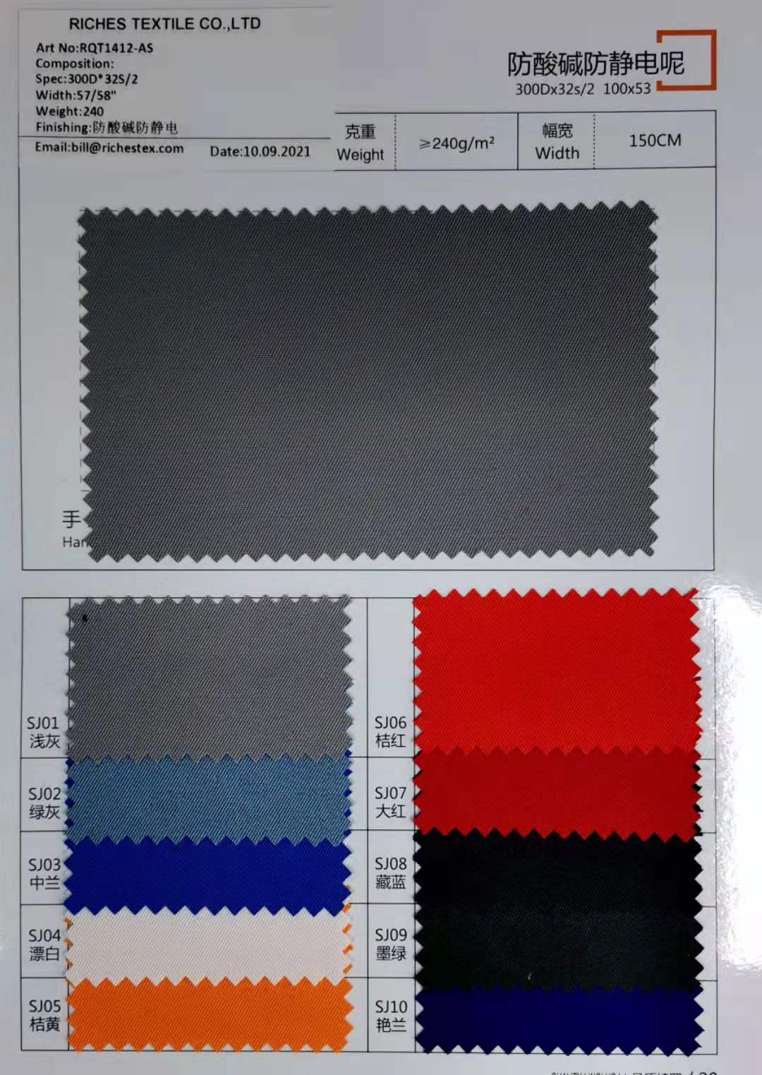 防酸防堿防靜電T99% 1%導(dǎo)電紗 230克面料
